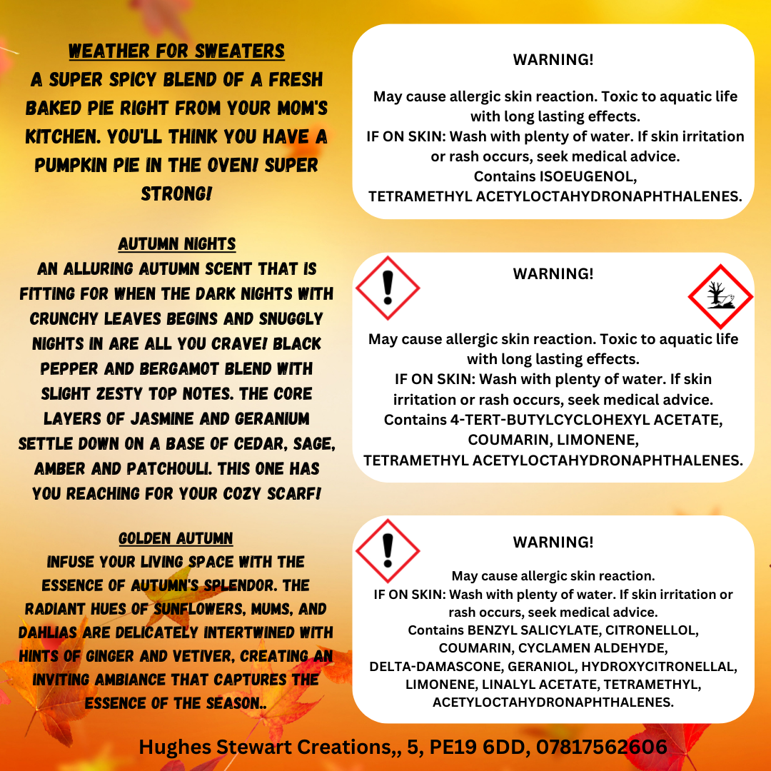 Introducing our beautiful autumn collection, the collection contains a range of stunning scents that embody autumn.